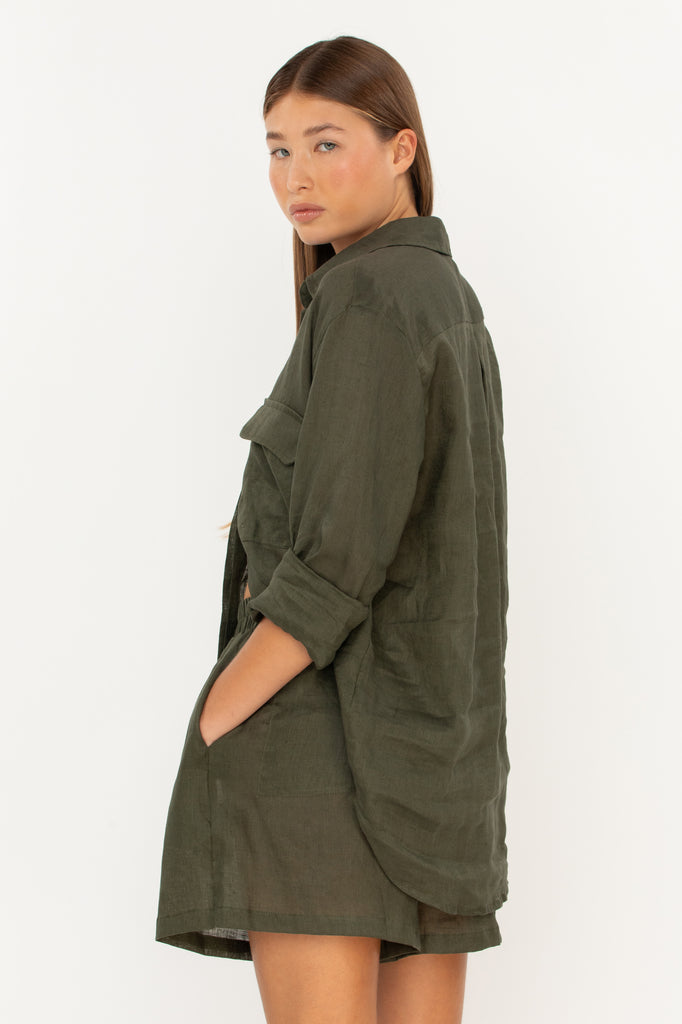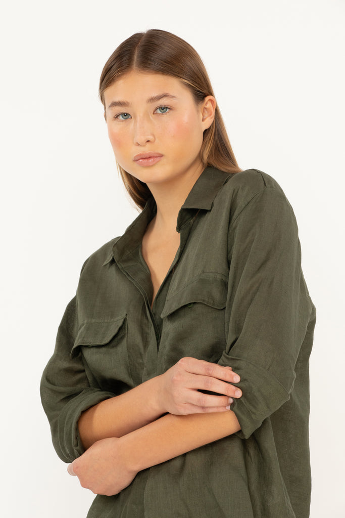Everyone needs a staple, linen button-down cover up in their closet and we’ve perfected it with the Mentawai Shirt. With a slight oversized fit and pocket detail, our classic Mentawai Shirt is a piece to instantly pull together your beach or poolside edit or simply paired with denim. The versatility of this piece knows no bounds.