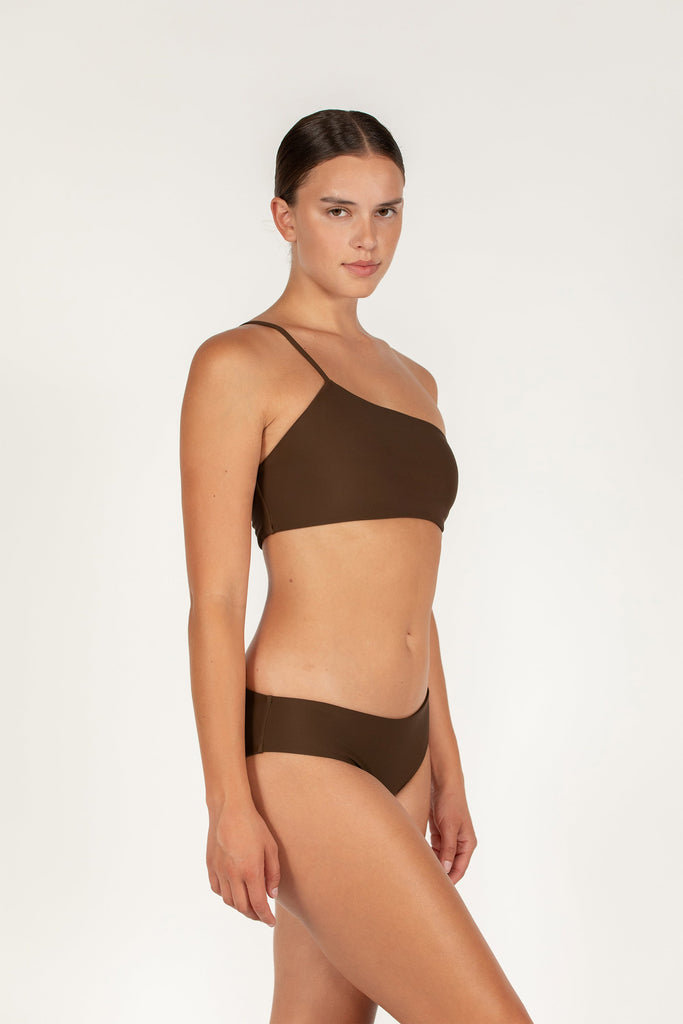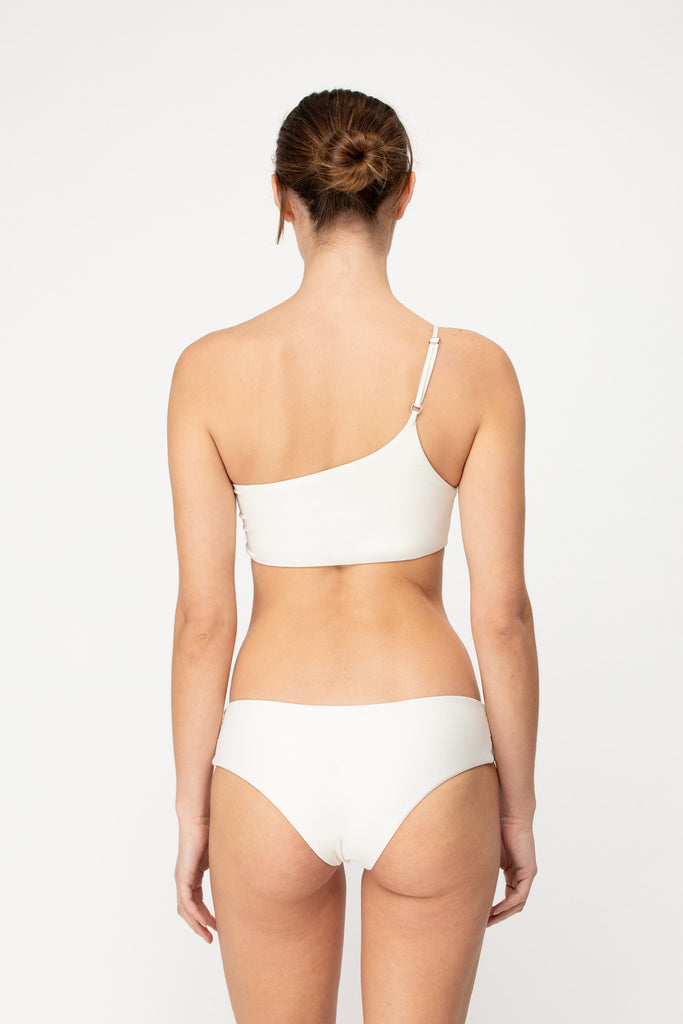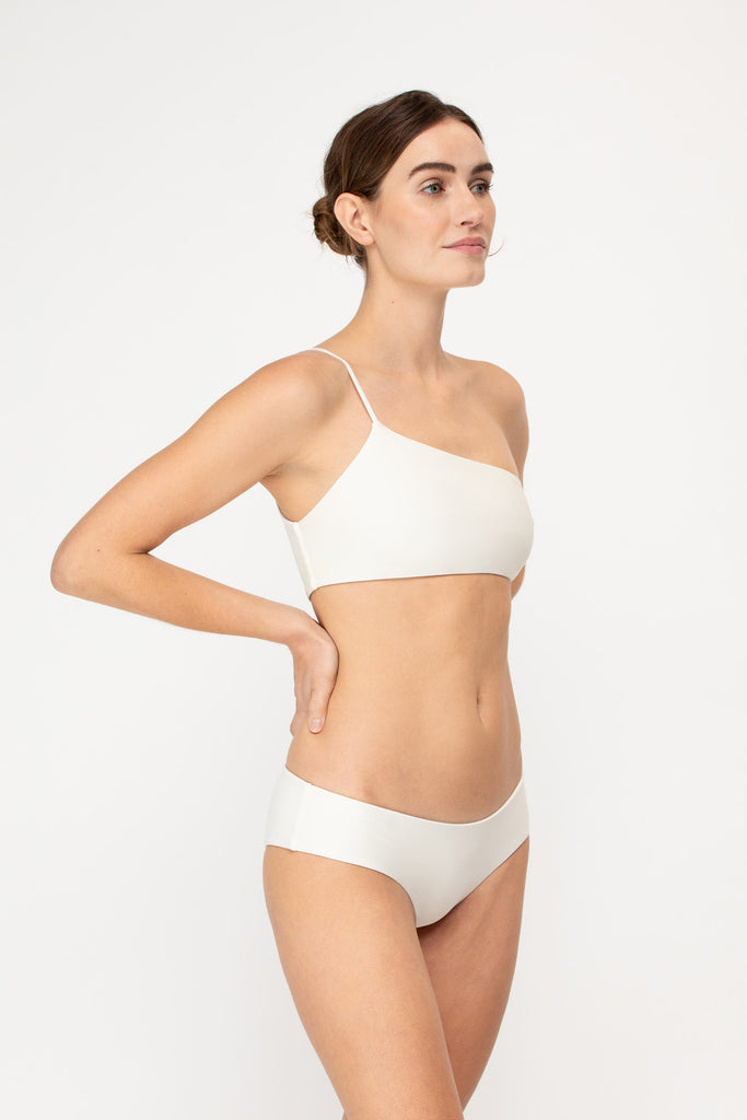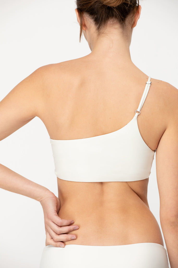 The Albi Top features an adjustable minimal one shoulder strap. Pair with your favorite essential MIKOH bottom and Toyama Sarong.