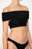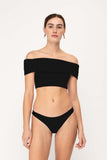 Meet Anette, an off-the-shoulder bikini top with a distinctive silhouette that feels both modern and feminine. Anette offers a fresh take on minimal swimwear. Style with the Suva bottom for a refined, statement-making look.