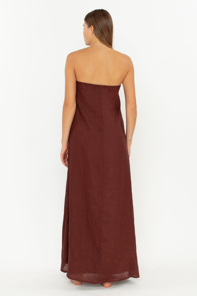 - Strapless Linen Maxi Dress