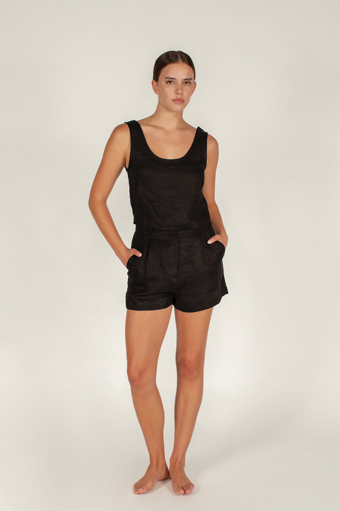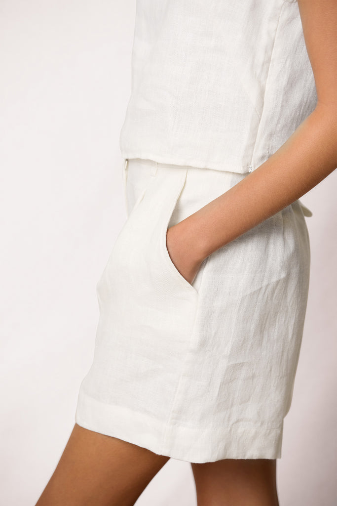 For a touch of soft tailoring, consider The Yara Short, a 100% hemp twill, high waisted short with smart detailing of pockets and belt loops. Pair with its matching Levanzo Top for a polished, tailored look.