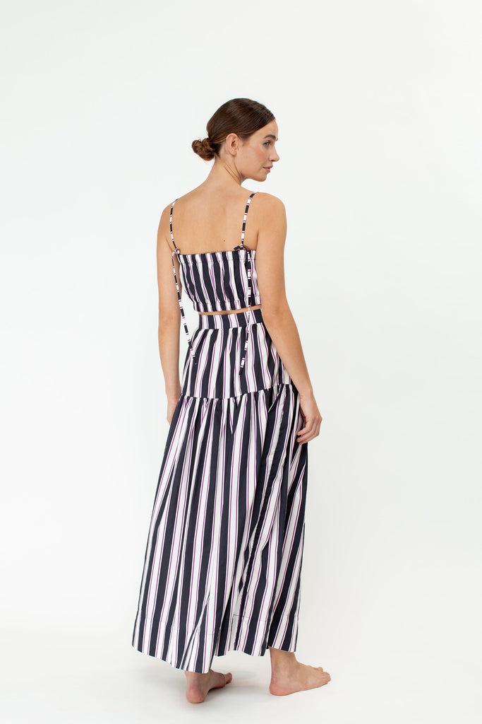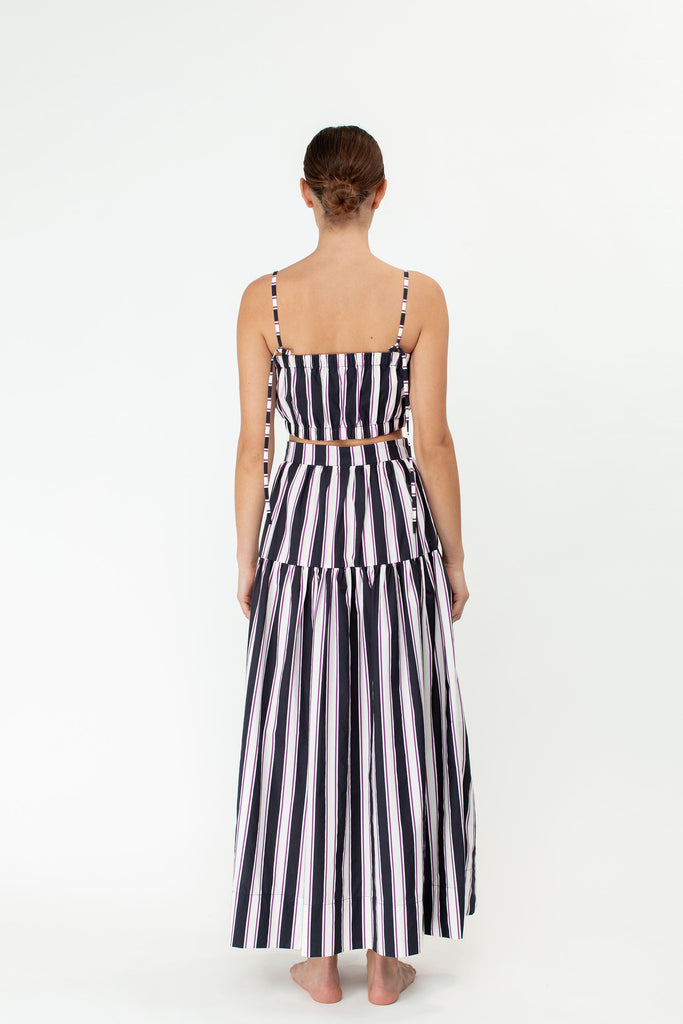 Alora is the newest addition to the skirt assortment. Crafted from lightweight fabric, this piece features a tiered ruffle design that adds a touch of movement and texture. Perfect for an elegant daytime look or a relaxed evening, Alora flows gracefully with each step. Pair with the Cosetta or Opihi Top to complete your look.