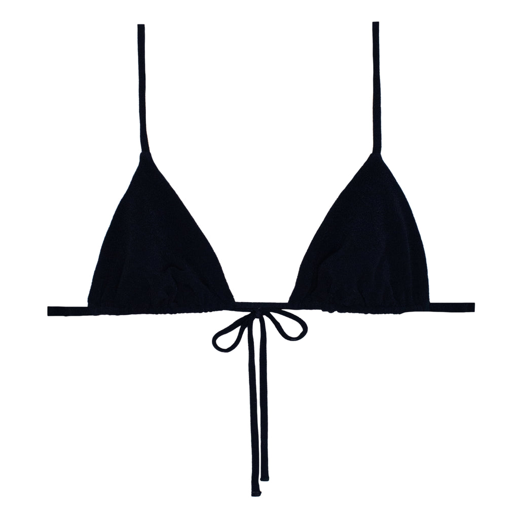 A MIKOH essential year after year, the Catalina Top is a modern take on the classic triangle bikini. Designed with adjustable back ties instead of a traditional halter, this versatile swim top can be worn crossed at the back or tied around the neck for a customizable fit. Minimal yet flattering, the Catalina Top offers effortless style and support, making it a must-have triangle bikini top for every swim wardrobe. Cut in MIKOH’s newest textured fabric, Plush, for added dimension and elevated feel.