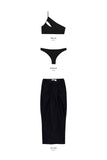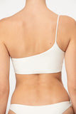 The Nelle top features a sleek thin strap and a chic keyhole cutout in the front, this asymmetrical design blends modern style with minimalism. Perfect for poolside lounging or beach adventures, it’s a statement piece for your swimwear wardrobe.