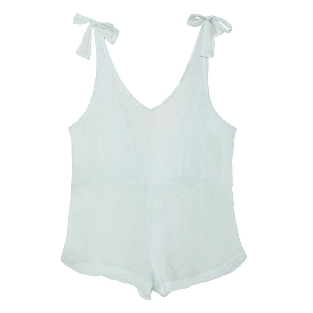 Constructed in lightweight cotton gauze, the Tarawa romper is every woman’s closet staple for the beach. The adjustable ties at the shoulders and v-cut detail in the front and back make this the perfect beach-going edit.