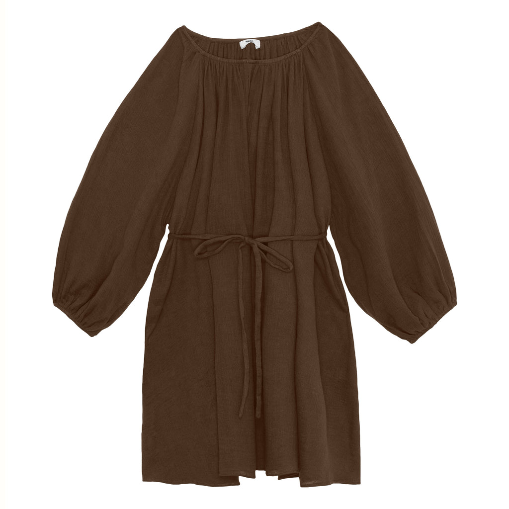 Meet Allegra. This relaxed fit, lightweight shift dress features string ties at the waist to adjust your fit, billowy long sleeves, and a v-neckline. Wear with casual ease and style with a strappy sandal and your favorite statement earrings.