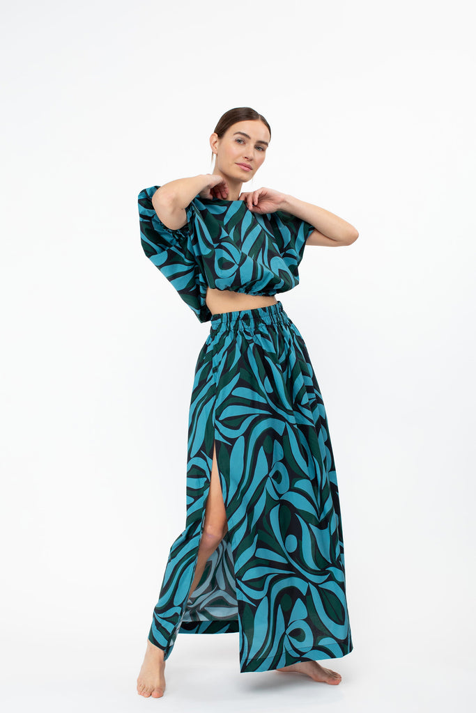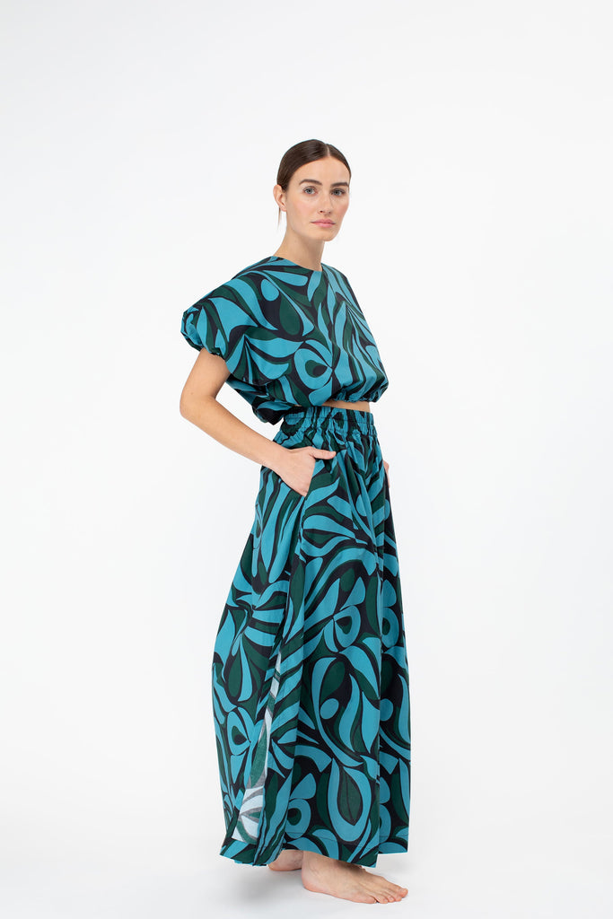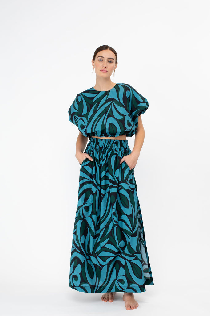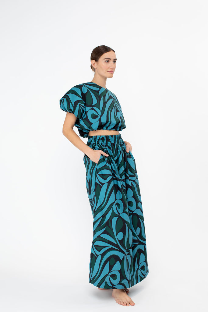 With its high slits and elastic waistband, the Delia was designed to sit slightly higher on the hips. This free flowing skirt is a must-have piece to work into your current wardrobe. Wear yours with the Cosetta Top for a sleek tailored look or the Opihi bubble top for some drama. Lovingly named after our Aunty Delia (also known as our Aunty Dee).